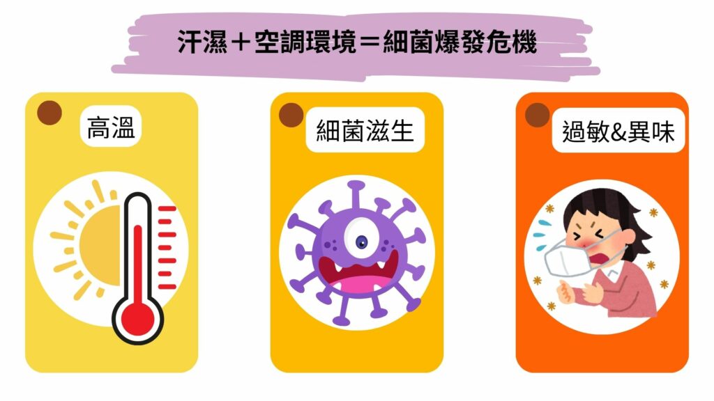 酷暑高溫下的細菌滋生,中央氣象署預測本周體感溫度突破38°C,高溫環境下,衣物、口罩、抱枕等高接觸布料成為細菌滋生的溫床。金黃色葡萄球菌、大腸杆菌等常見細菌在潮濕環境中迅速繁殖,引發健康隱患。