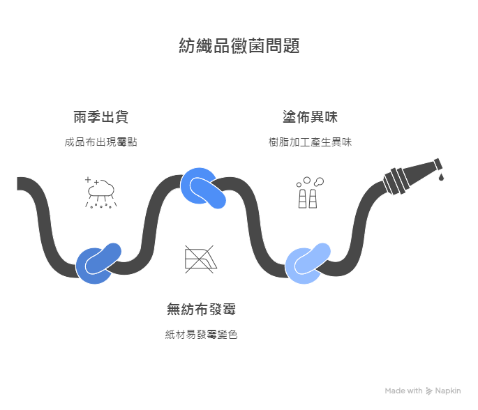 在濕度高、氣候變化劇烈的環境中,黴菌是紡織品品質的隱形殺手。無論是布料、無紡布還是包裝紙材,只要儲放條件稍有不慎,就可能出現發霉、變色、異味等問題,導致產品報廢、客訴或品牌信譽受損。因此,越來越多紡織後加工廠與塗佈廠開始尋找紡織品防黴劑推薦、低毒性防黴劑紡織應用、防黴防腐二合一助劑等方案,從源頭建立防黴防線。